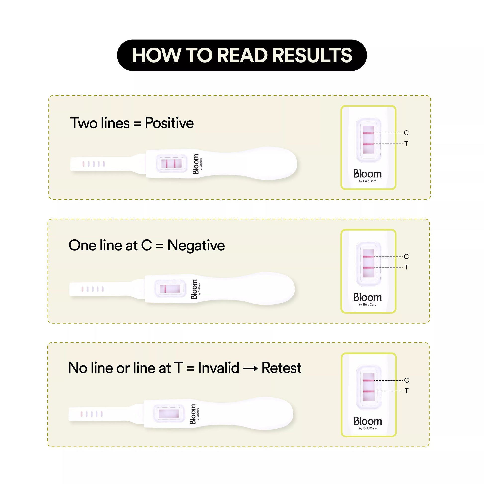 Remove the cap and hold the absorbent tip of the test stick in your urine stream for 5–10 seconds. Place it flat and wait 3 minutes.
