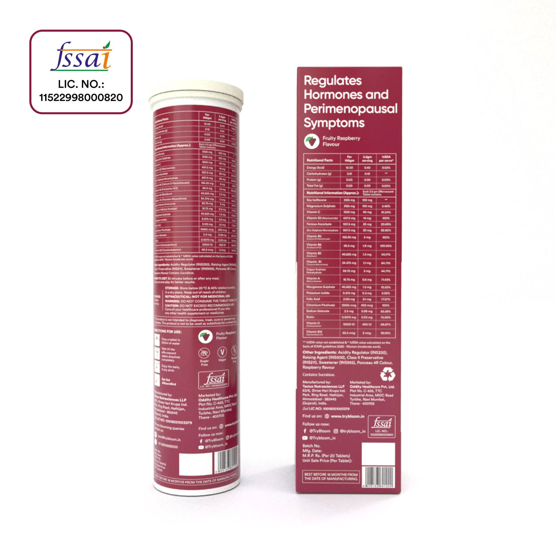 The Bliss Effervescent Tablets are a comprehensive menopause supplement essential for managing the intensity, duration, and effects of perimenopausal symptoms, primarily hot flashes, hormonal imbalance, and irregular periods. They contain 22 essential vitamins like Vitamin C, Vitamin D, and Vitamin A, along with soy isoflavones to provide relief from menopause symptoms.