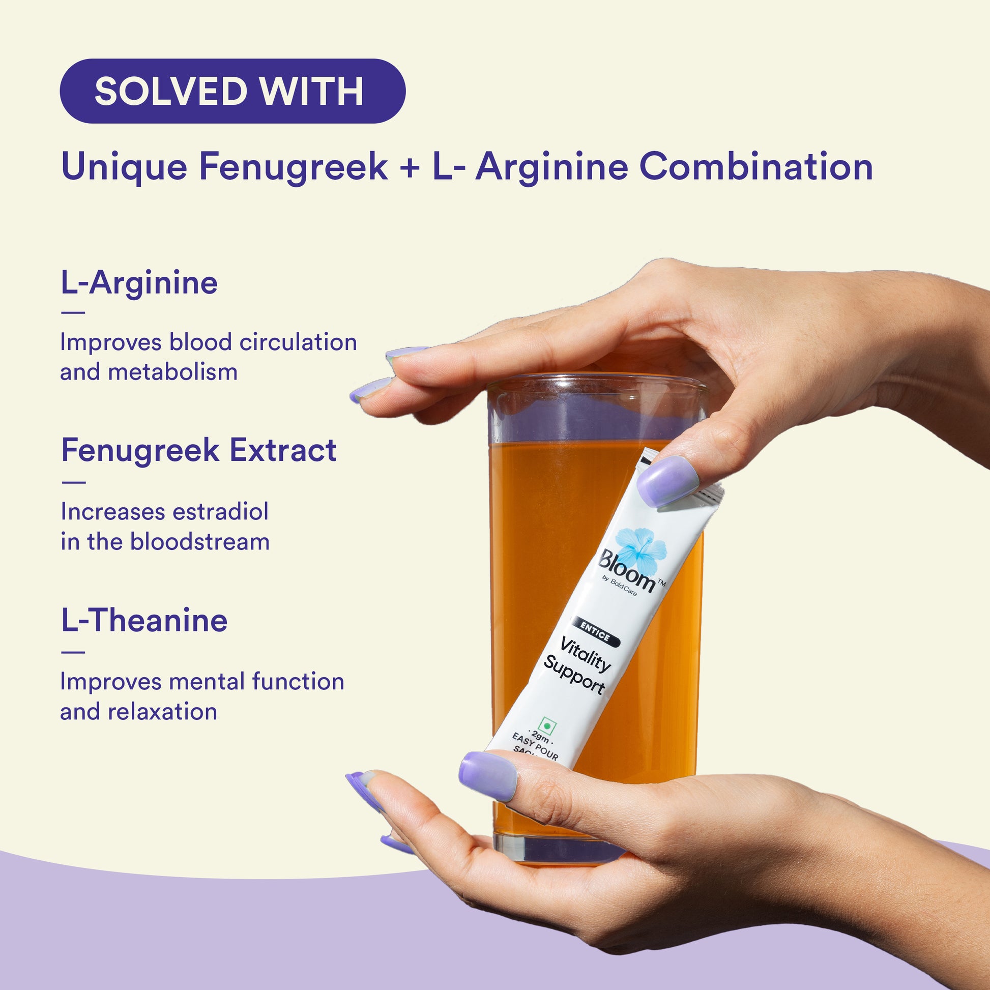 A vitality-boosting powder is used to enhance, desire, mood, and enthusiasm during intercourse. It is useful for women who experience fatigue and stress, are experiencing menopause, or face issues with arousal.