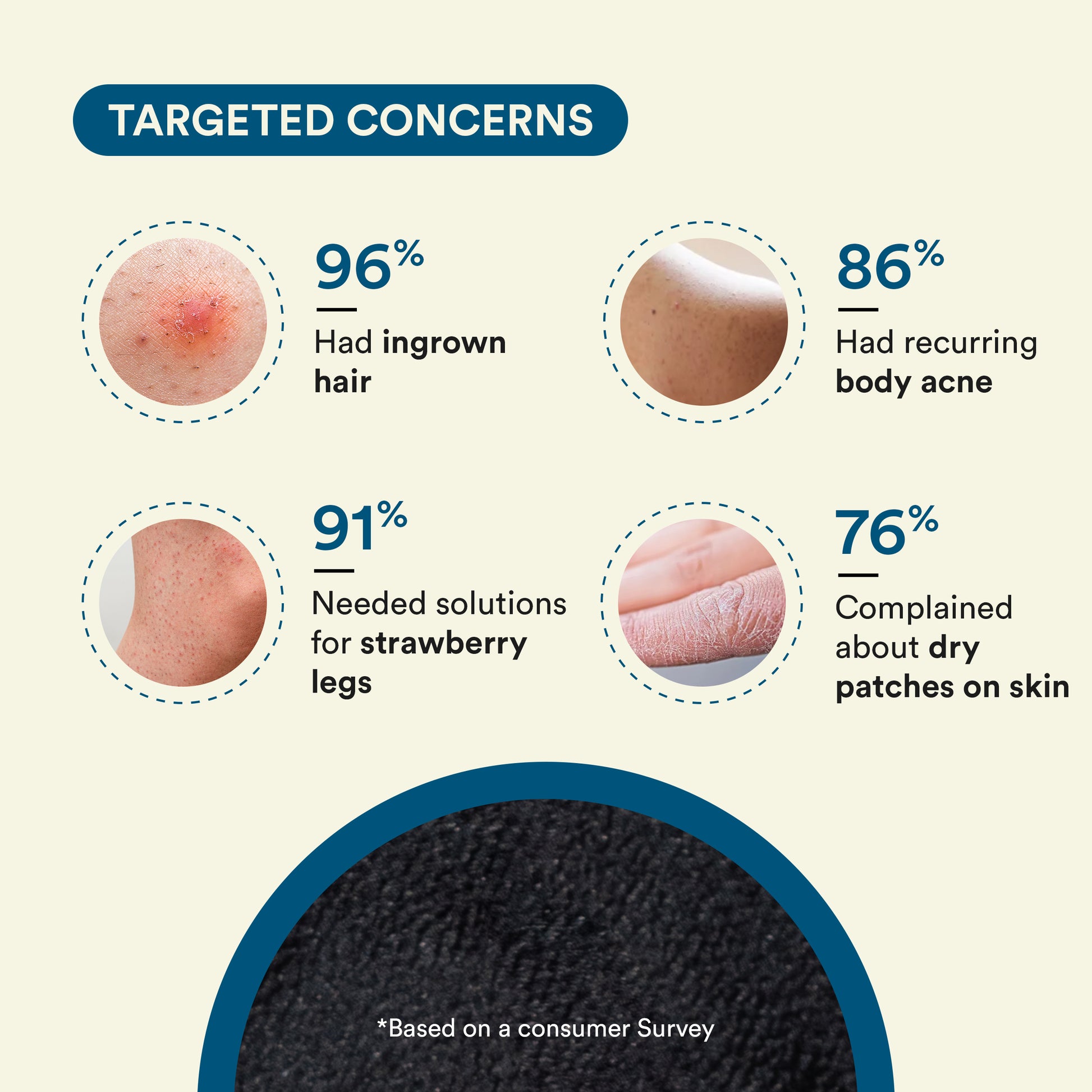It also unclogs the hair follicles on the body to release ingrown hair and reduce formation of the same.