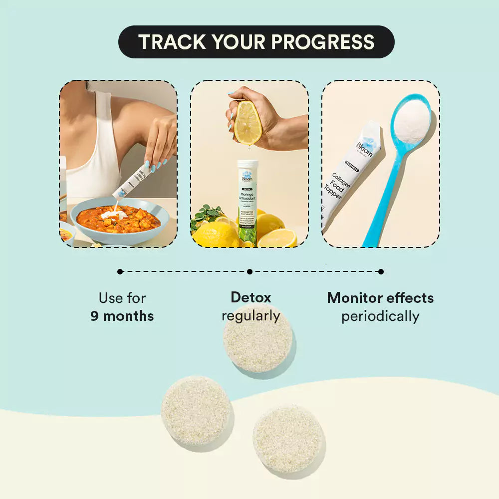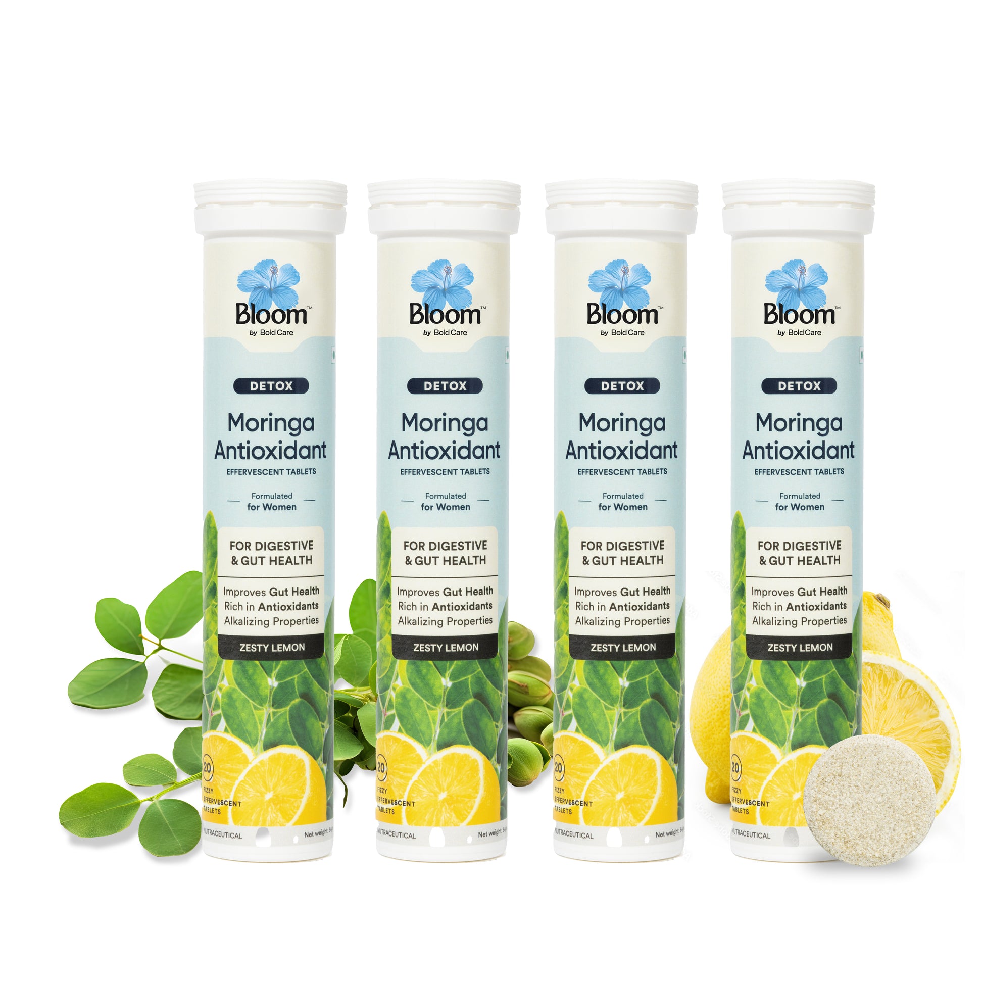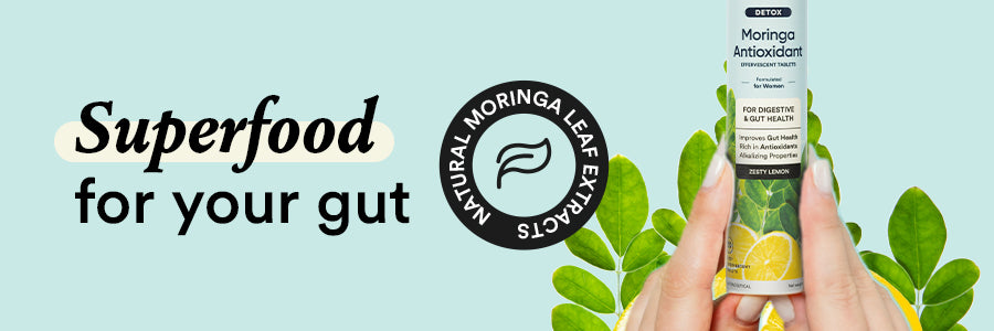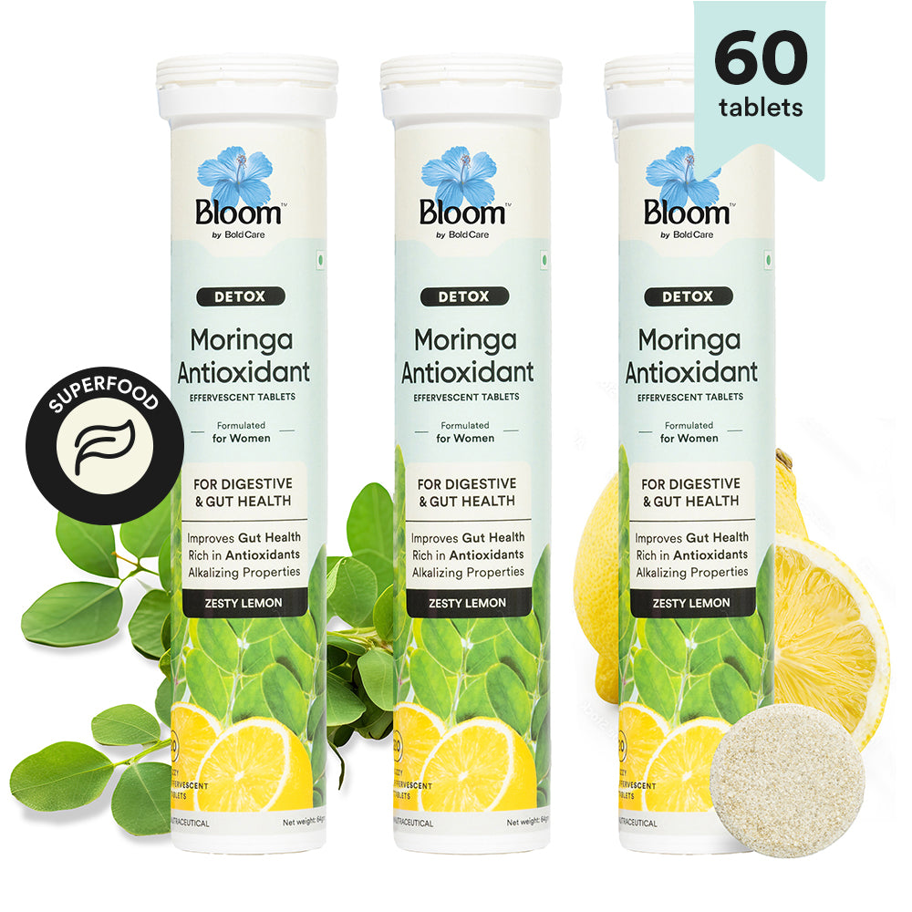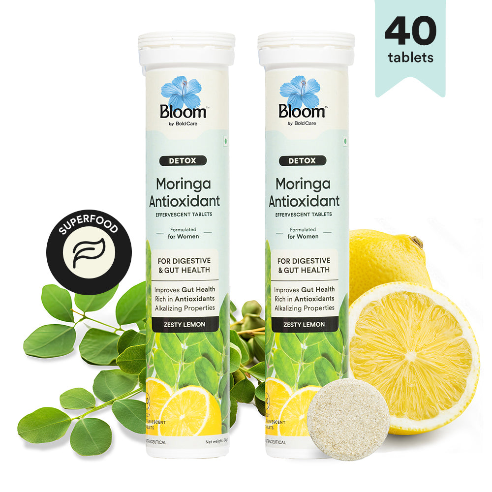 The Detox Moringa Effervescent Tablet is formulated with a combination of natural moringa leaf powder and emblica officinalis for better gut health, well-being, and overall health benefits.