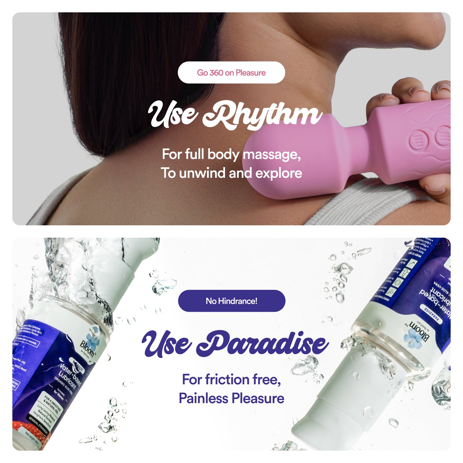 Rhythm is designed to used in multiple ways so that you can indulge in self-care without any hinderance. However the shape, size and vibrations of Rhythm are specially crafted to give targeted stimulation for full body massage