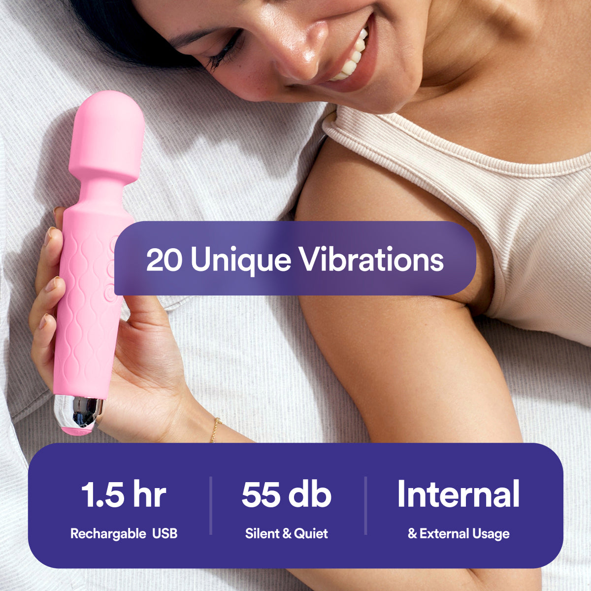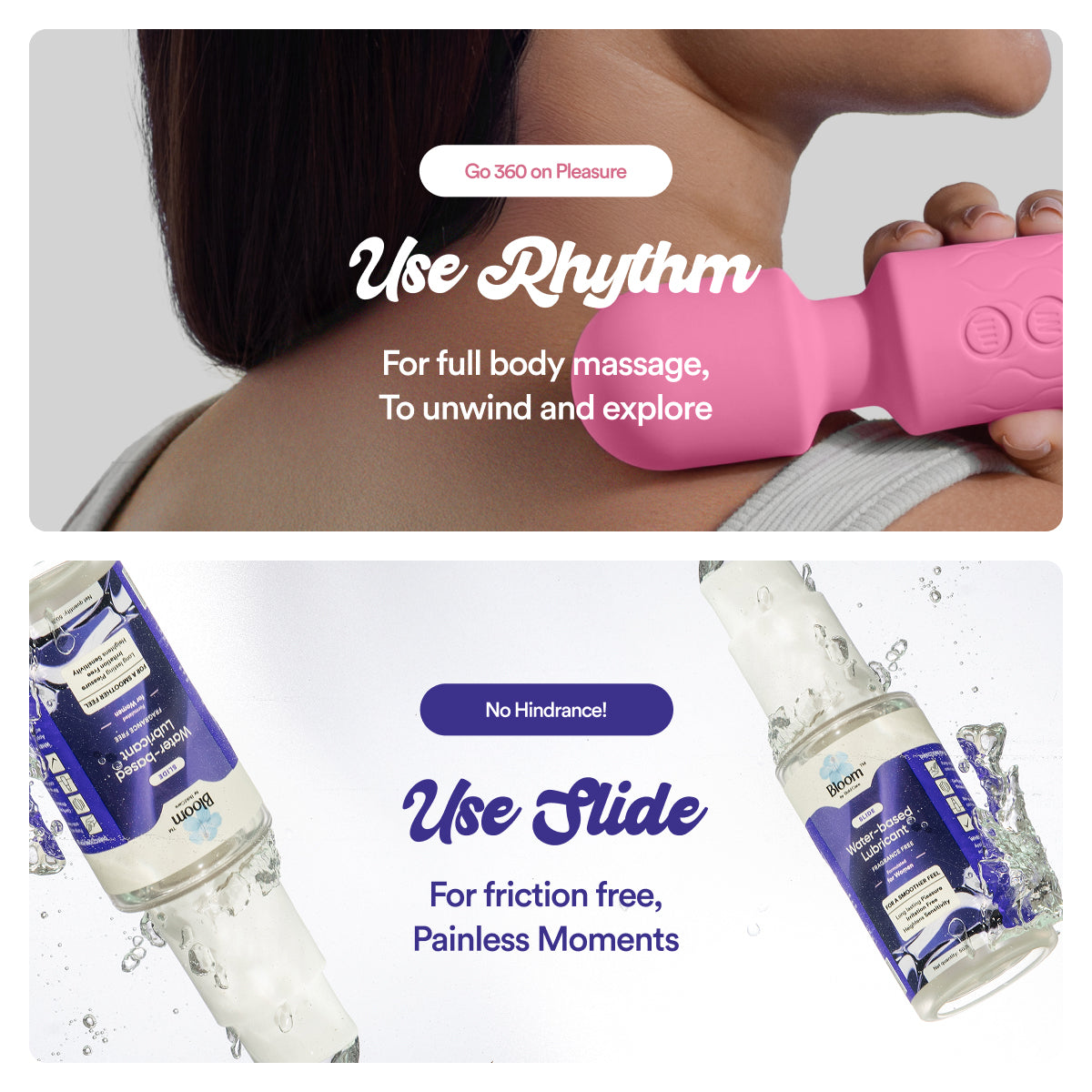Rhythm is designed to used in multiple ways so that you can indulge in self-care without any hinderance. However the shape, size and vibrations of Rhythm are specially crafted to give targeted stimulation for full body massage.