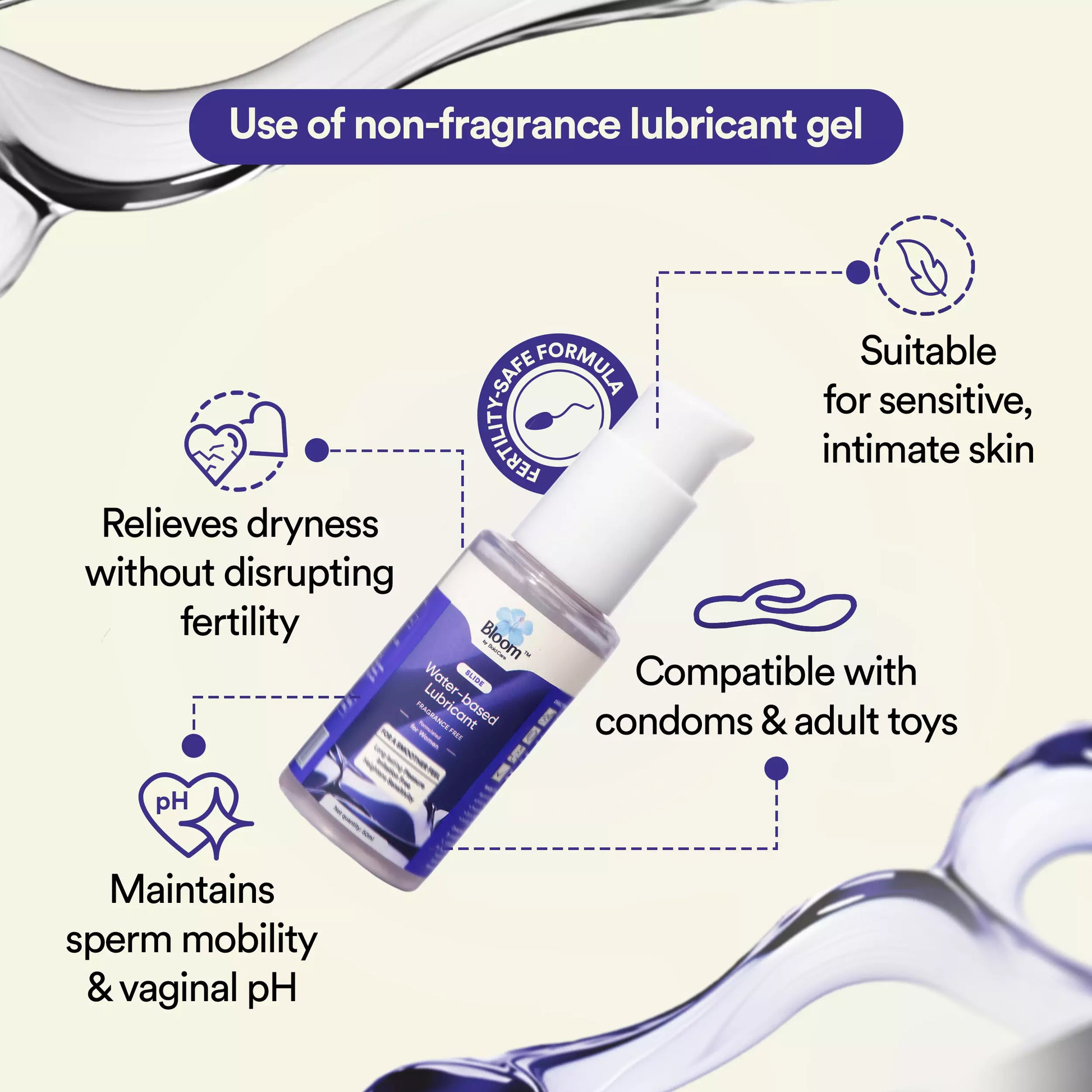 Slide helps you enjoy smoother, more comfortable intimacy, even if your body is not producing enough natural lubrication. It: 1. Supports sperm movement 2. Doesn’t interfere with fertility 3. Eases irritation and dryness 4. Is safe for everyday use