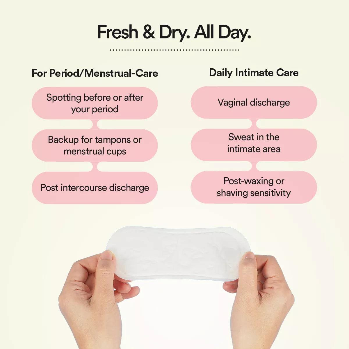 Whether you’re dealing with discharge, spotting or incontinence, a panty liner prevents leakage and microbial growth. Discharge and spotting can often stain your underwear, and the moist feeling is often uncomfortable. Using a panty liner is a simple way to regularly practice good intimate hygiene.