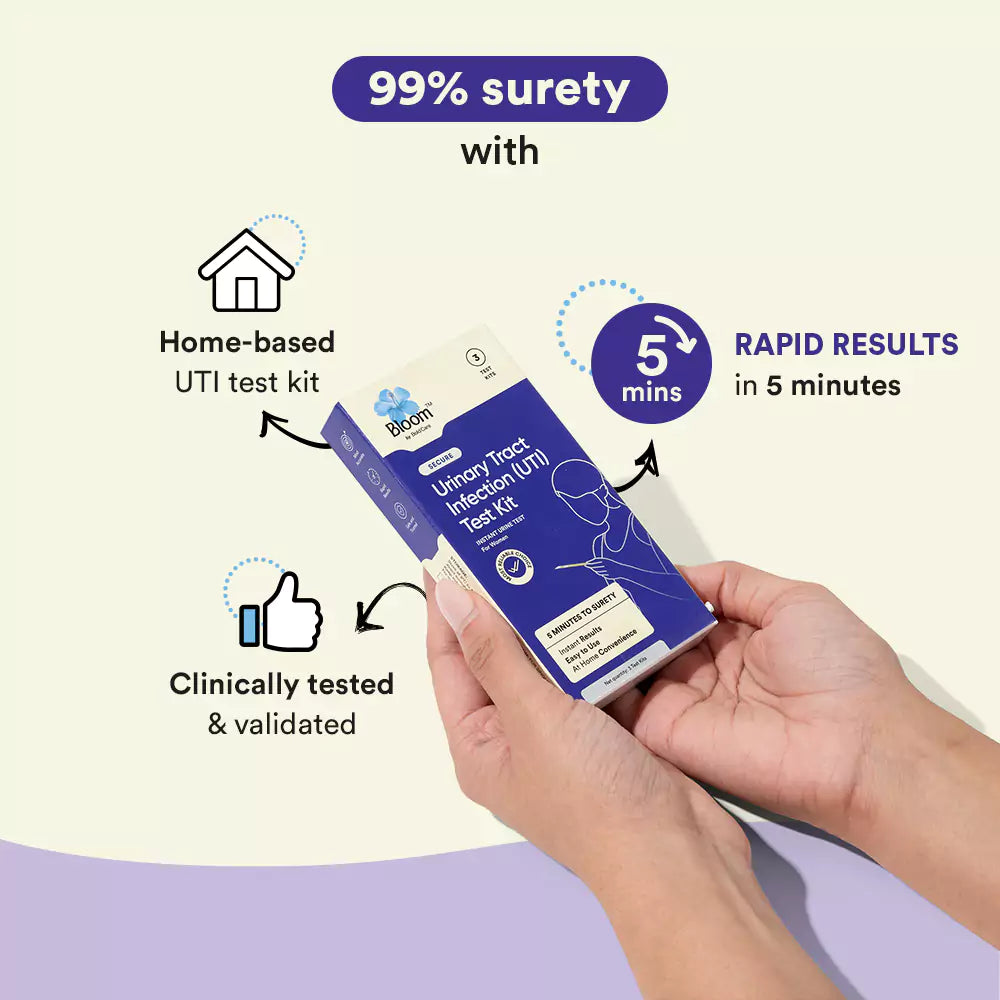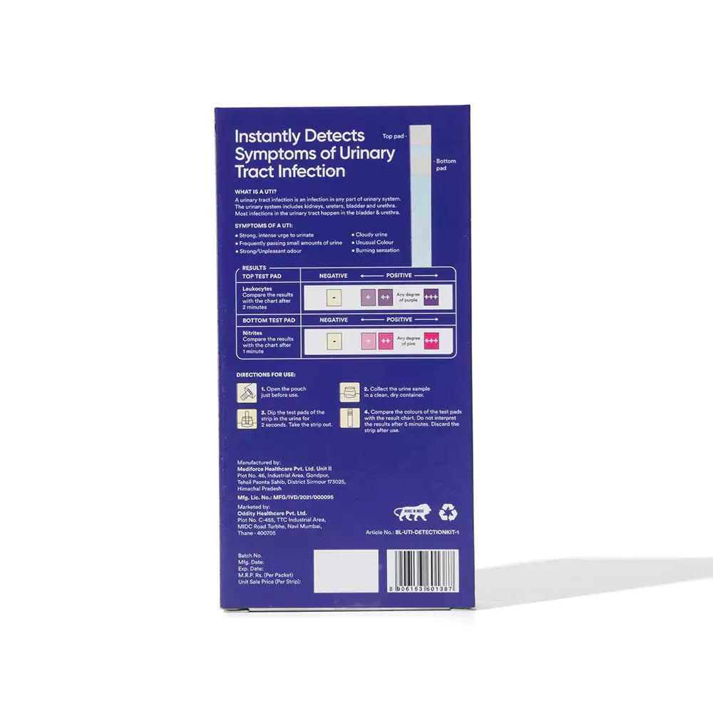 A UTI kit is a rapid testing home-based strip which detects the presence of white blood cells and nitrites, which confirm the presence of a urinary tract infection. The UTI test kit increases convenience, helps women quickly detect UTIs and start their treatment quickly.
